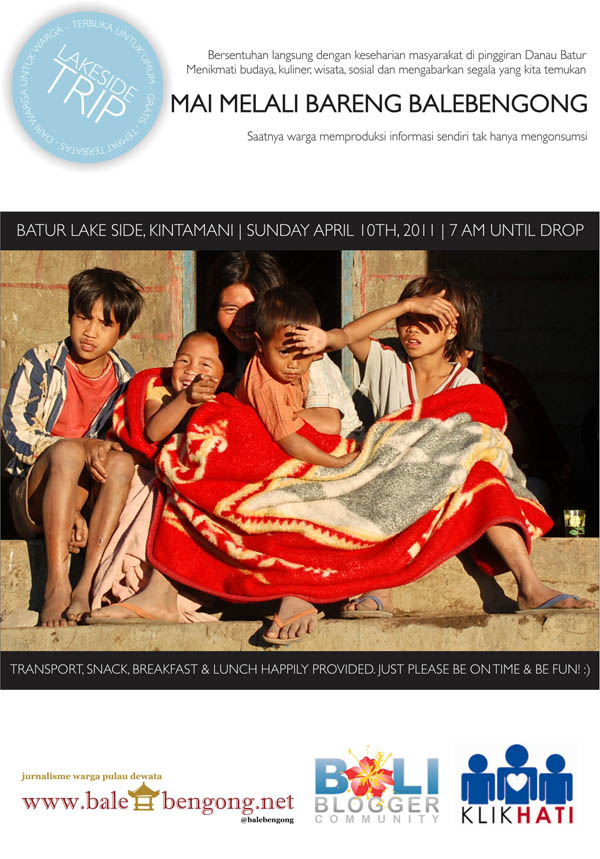 Melali bareng ini akan diadakan pada Minggu, 10 April 2011. Pukul 07.00 – 18.00 WITA di sekitar Danau Batur, Kintamani.