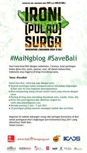 Bali, Blogging, Lingkungan, sloka institute Gita Cinta untuk Bali June 19, 2011 luhde 1 Comment Tweet TENTANG LOMBA #MaiNgblog #SaveBali Continue reading Gita Cinta untuk Bali → Tweet